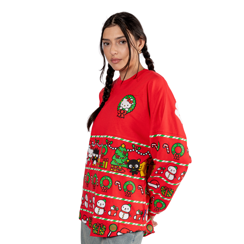 Add sweetness to your holiday wardrobe with this cozy Hello Kitty Spirit® Jersey featuring cheerful designs inspired by the beloved Sanrio character. Perfect for spreading joy all season long.