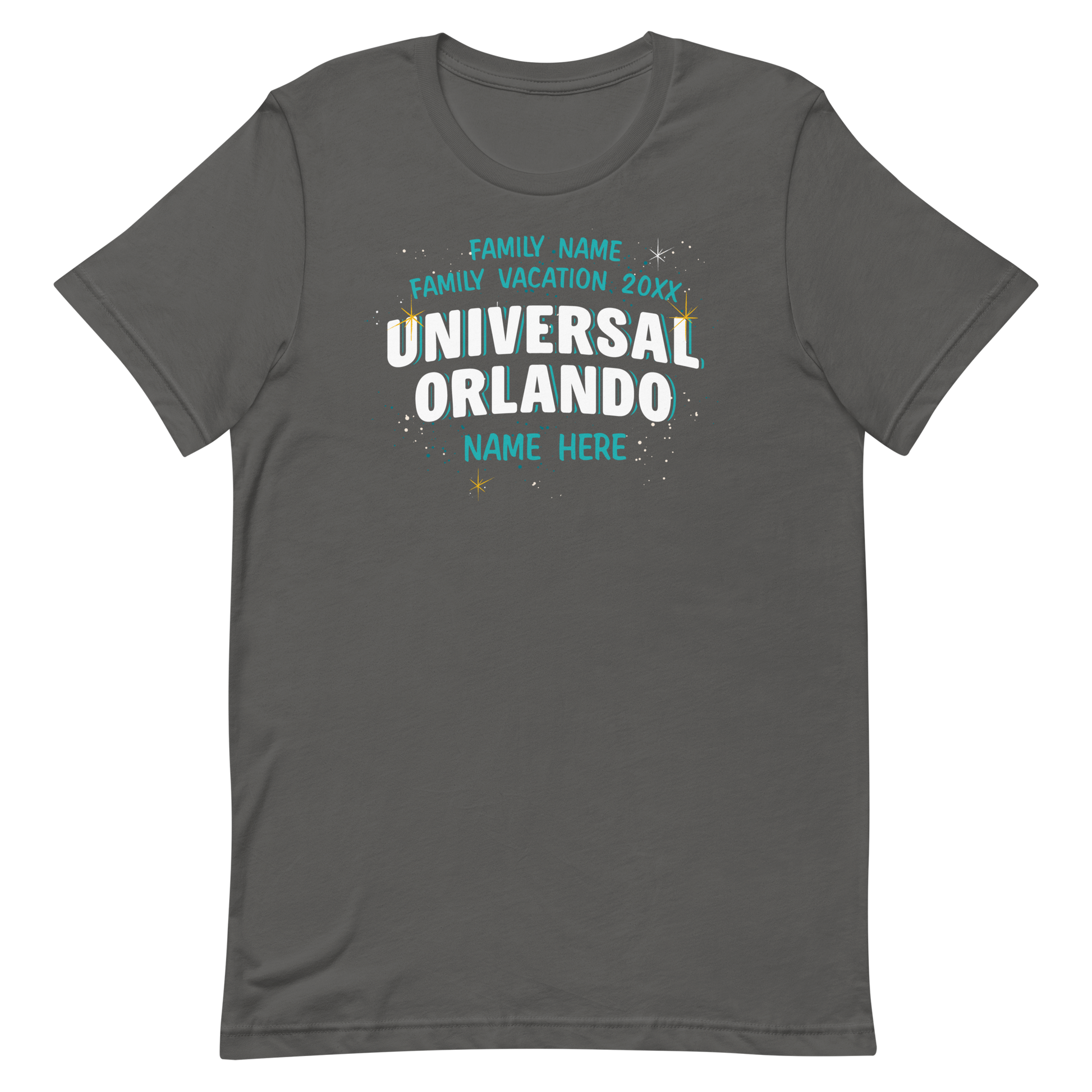 Make every memory count with the Universal Orlando Resort Family Vacation Personalized T-Shirt. Featuring bold block lettering, your family name, vacation year, and individual name, it’s a personalized keepsake that celebrates your Universal adventure in true park style!