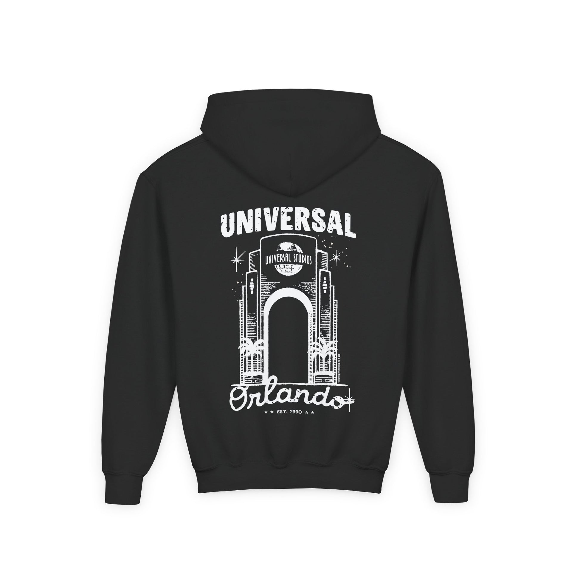 Showcase park style with the Universal Orlando Resort Youth Hoodie! Featuring the famous entry archway and bold “Universal Orlando” lettering across the front, it’s perfect for any young fan.