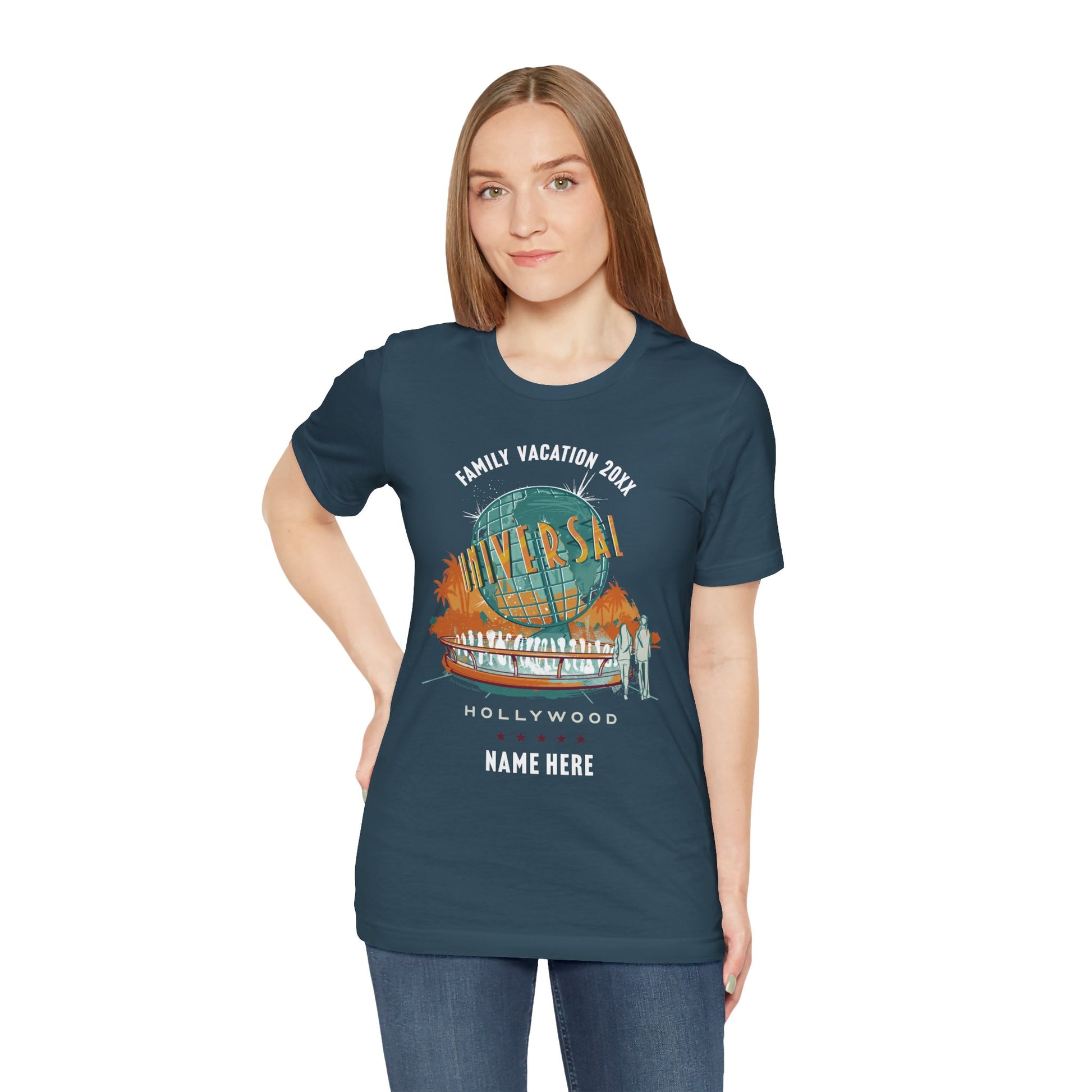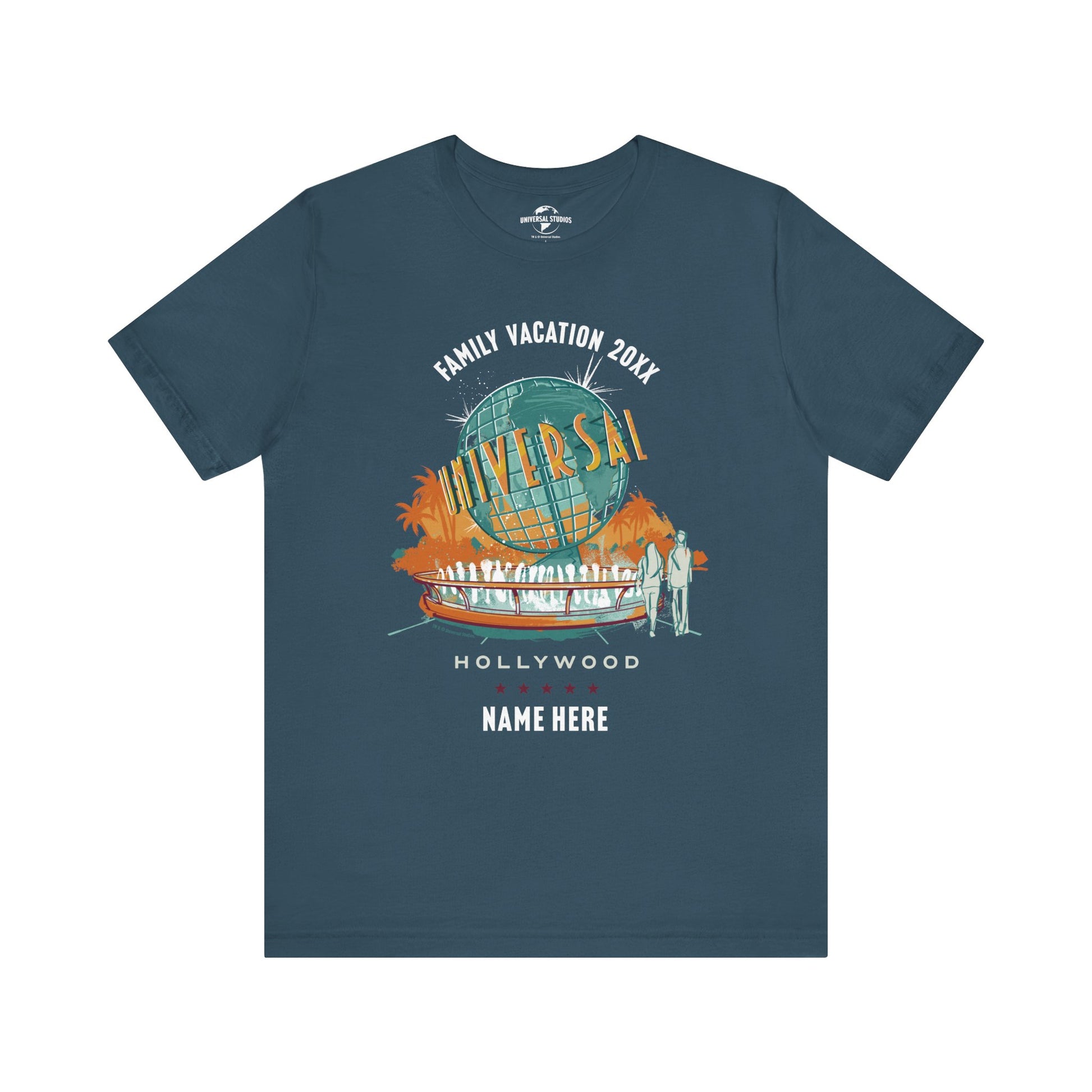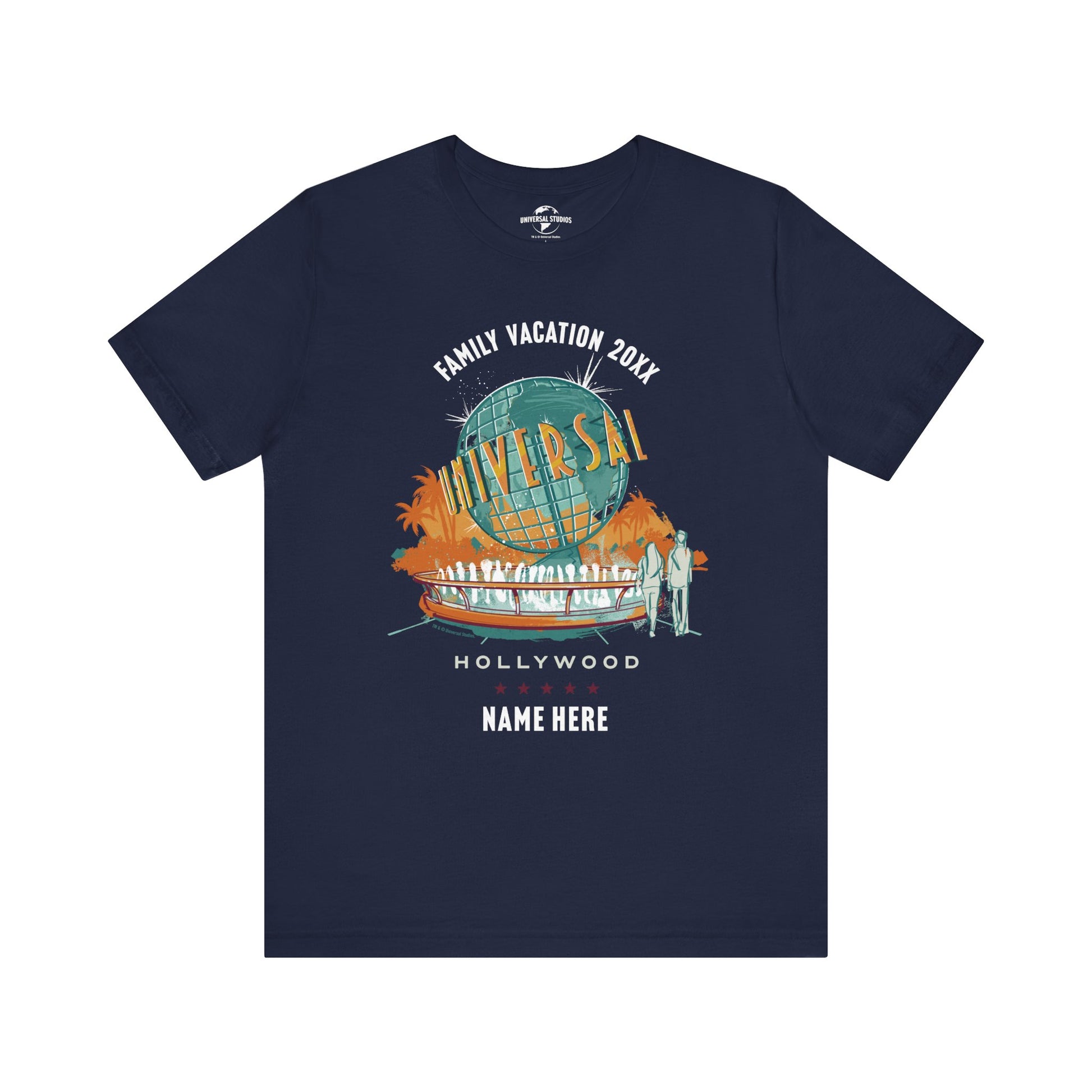 Celebrate your park adventure with the Universal Studios Hollywood Vintage Globe Personalized T-Shirt. Featuring the iconic rotating globe and a custom name, this comfortable tee makes every visit to Hollywood unforgettable!
