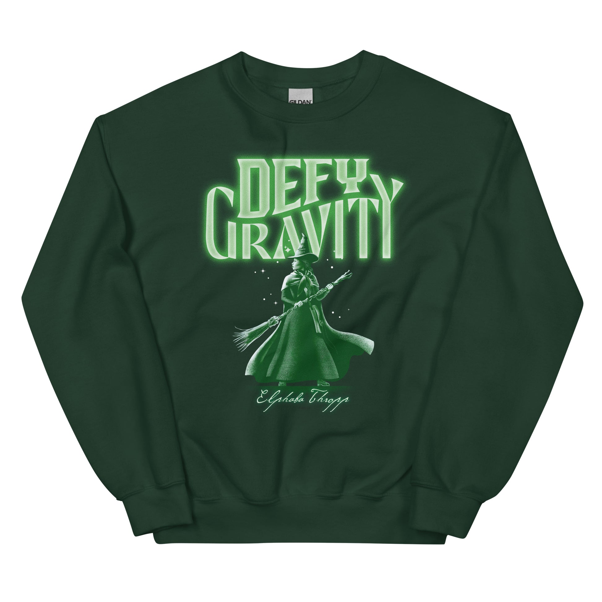 The Wicked Defy Gravity Crewneck Sweatshirt is a must-have for fans of the hit movie of 2024. Made with a soft, high-quality fabric blend, this cozy sweatshirt features the iconic "Defy Gravity" slogan, showcasing your love for the unforgettable soundtrack and empowering scenes.