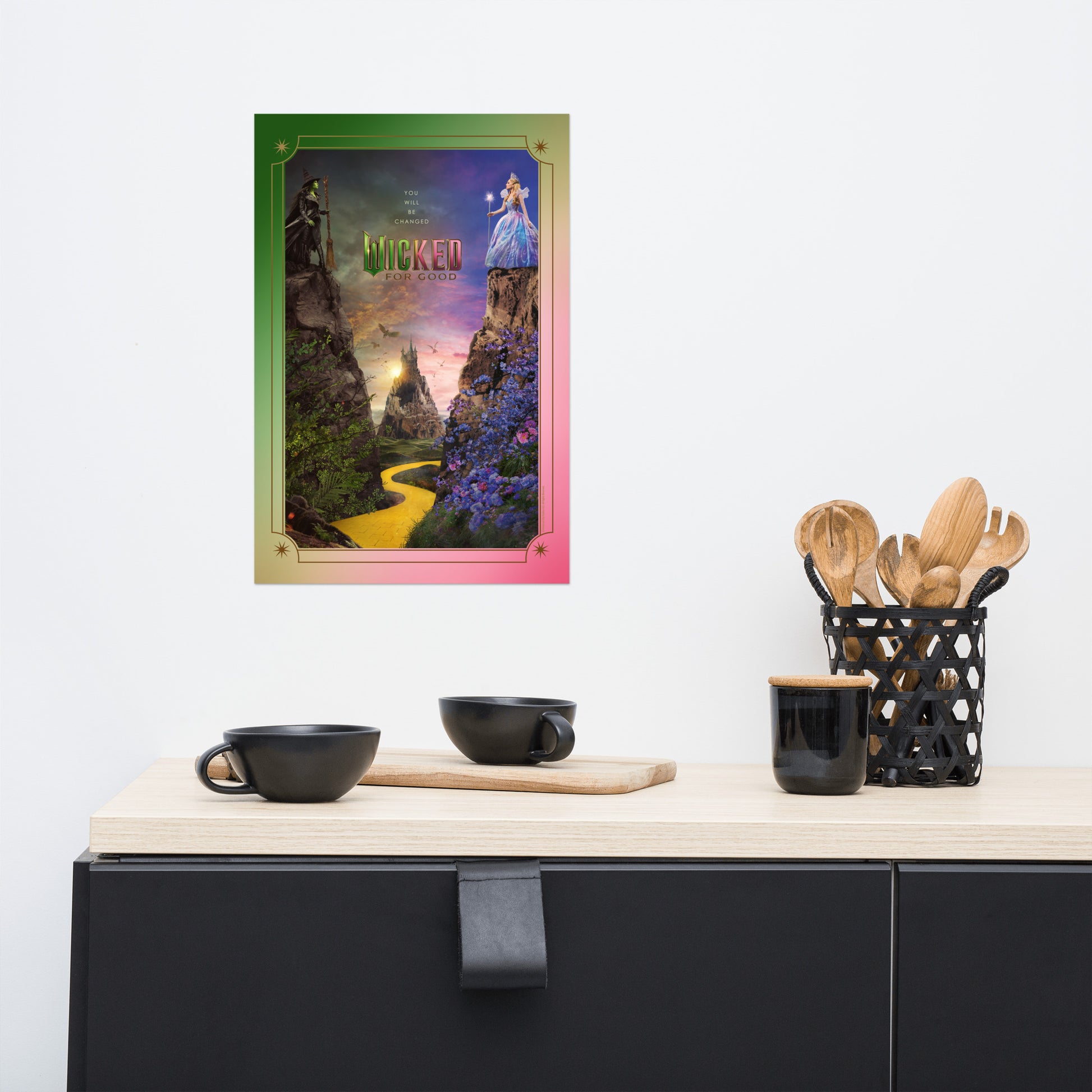 Bring home the magic of the finale with the Wicked: For Good Key Art Poster. This poster features a high-quality print of the key art from the second installment of the movie. It's the perfect piece of decor for any fan who wants to remember the climactic ending of Elphaba and Glinda's story.
